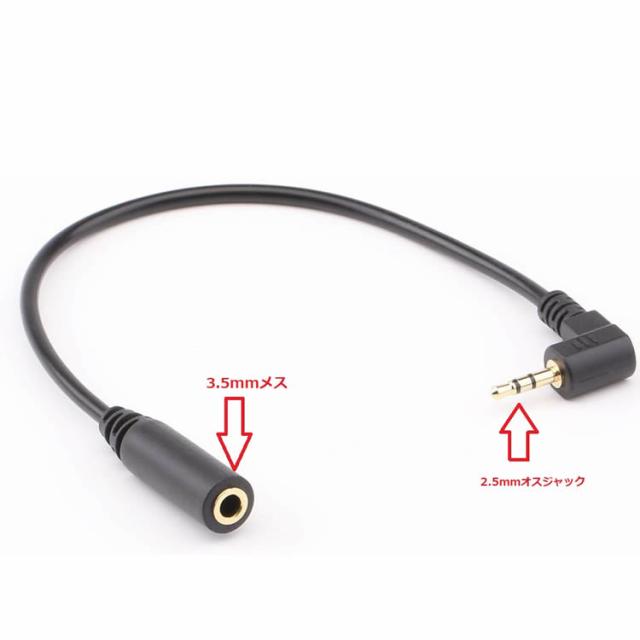 ピン形状:2.5mmイヤホンジャック3極(オス) - 3.5mmイヤホンジャック3極(メス)。