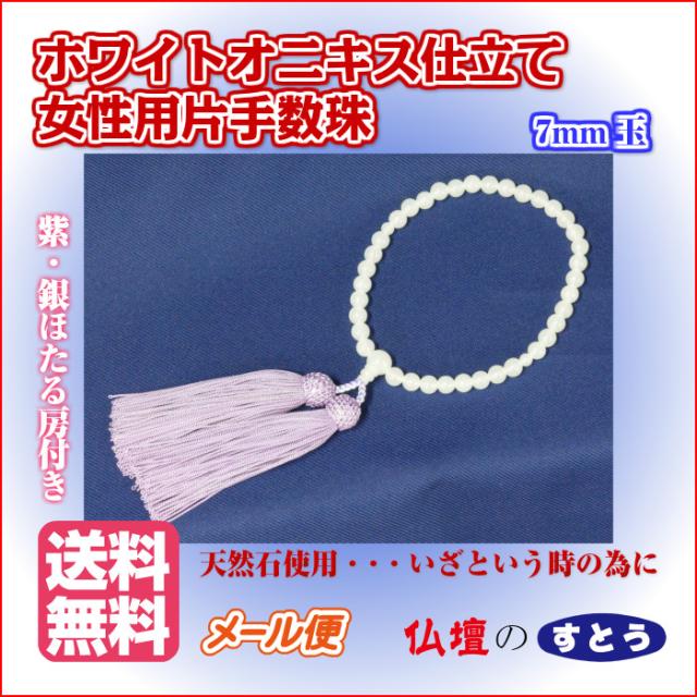 御念珠女性用片手 ホワイトオニキス仕立 7mm玉【送料無料】メール便 葬儀 法事
