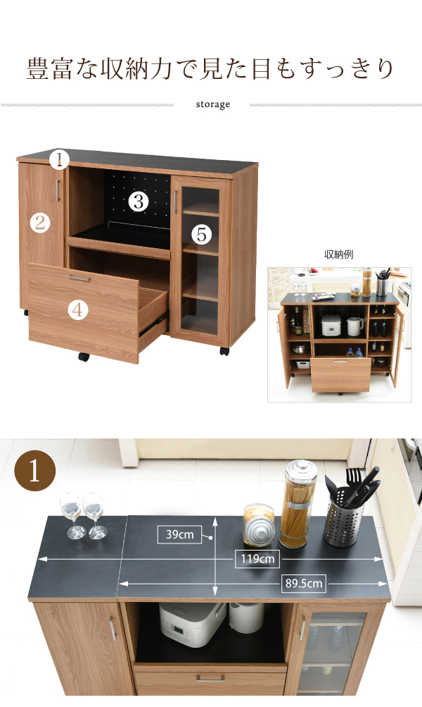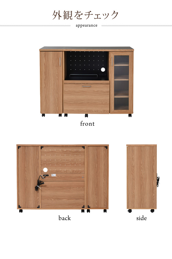 KEITTIO キッチンカウンター 食器収納付き 幅120cm (キッチンカウンター 食器収納 キッチン収納 高級感 北欧 シンプル ディスプレイ オープンスペース パンチングボード 可動棚 コンセント キャスター付き 木目調 おしゃれ おすすめ)