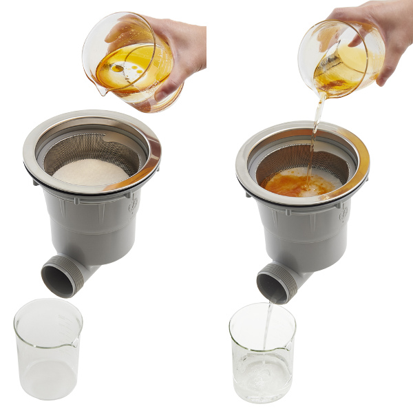 油だけをキャッチして排水トラップや排水管のヌメりを防止します。1枚につき最大で約40gの油を吸収し、それ以降は吸収が悪くなるのでお取替え時期の目安になります。(使用状況によっては吸収量に変化が出ることがあります)