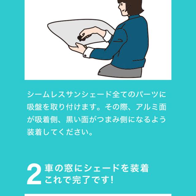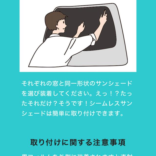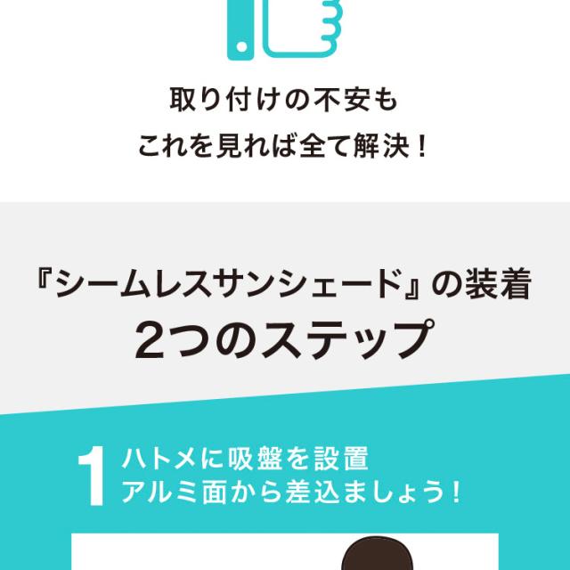 8.フロントガラスは、点検シールやTVアンテナが貼られており、吸盤が吸着しずらくなっています。サンシェード装着前に、吸着位置へベースシール(別売)を貼ってご対応ください。