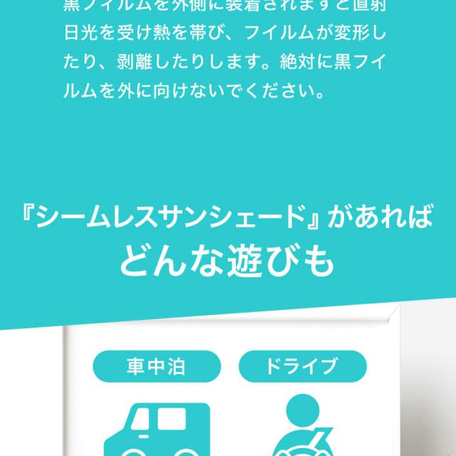 ★防水・遮光シームレスサンシェード登場!車内の着替え,宿泊、盗難防止、エアコン安定による燃費向上!カーテンタイプと違ってレールを付ける必要もございません。吸盤による簡易脱着なので誰でも簡単に何度でも装着できます。キャンプ、海、サーフィン、スノボ、スキーに大活躍です!★商品到着後レビューを書いて抽選で2大特典をゲットしよう!