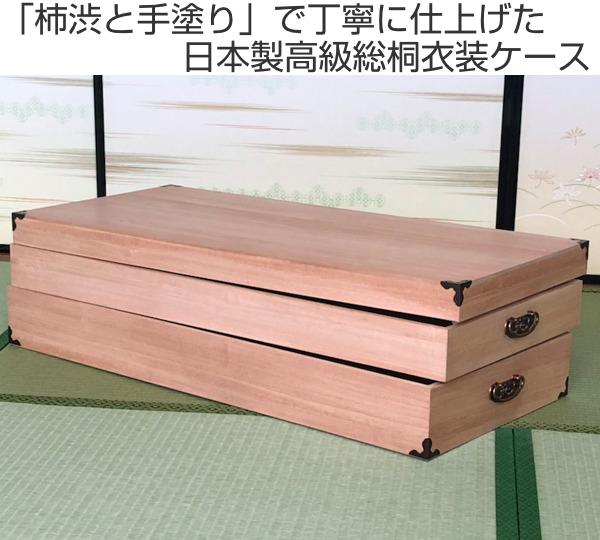 衣装ケース 桐製 衣裳箱 柿渋染 2段 日本製 幅91cm ( 桐衣装ケース 桐衣装箱 着物 収納 ケース 衣装箱 衣類収納 木製 桐ケース たとう紙 折らない 着物収納 蓋付き フタ付き 押し入れ収納 完成品 )