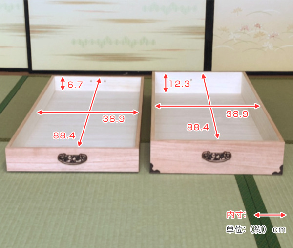 | 材質 | 本体側板・天板:桐天然木集成材 底板:桐合板 表面仕上げ:柿渋塗装 |