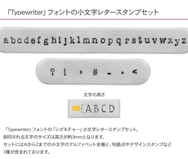 商品説明:「Typewriter」フォントの「シグネチャー」小文字レタースタンプセットです。刻印される文字のサイズは高さが約3mmとなります。