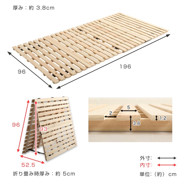すのこベッド シングル 2つ折り 檜 木製 天然木 ひのき すのこ ベッド 折りたたみ 収納 ( 二つ折り 折りたたみベッド すのこマット ベット ヒノキ 除湿 すのこベット スノコベッド 湿気 カビ ダニ 対策 折り畳み )