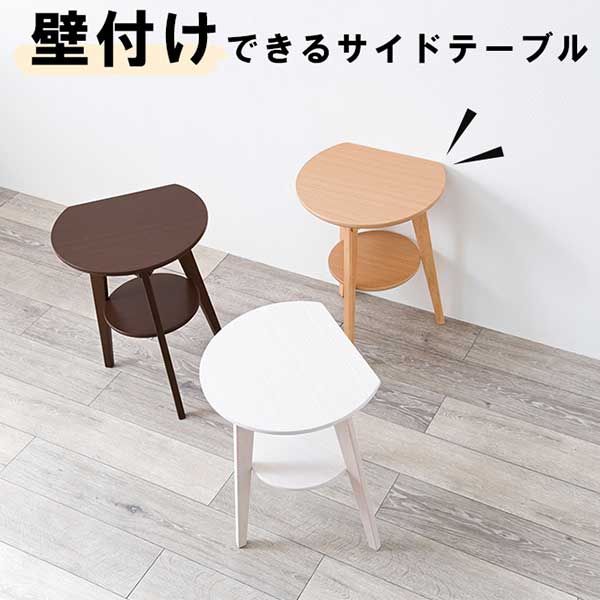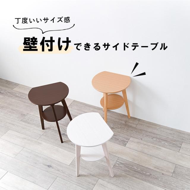 壁にピッタリ サイドテーブル / おしゃれ 北欧 丸 コンソールテーブル スリム 省スペース ミニテーブル ベッド ソファー用 小さい 丸テーブル 木製 ナチュラル 棚付き 玄関 花台 花瓶置き 壁寄せテーブル 壁付けテーブル
