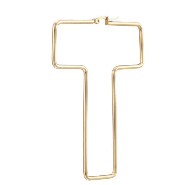 ステンレスゴールドアルファベットフープピアス ( T ) 1個販売 片耳 18G 18ゲージ 耳 軟骨 リングピアス ステンレスピアス ワンタッチ メンズ レディース 金色 結婚式 発表会 パーティー 男性 女性 大きい イニシャル 英語 文字 メッセージ プレゼント ギフト ビッグ ティー