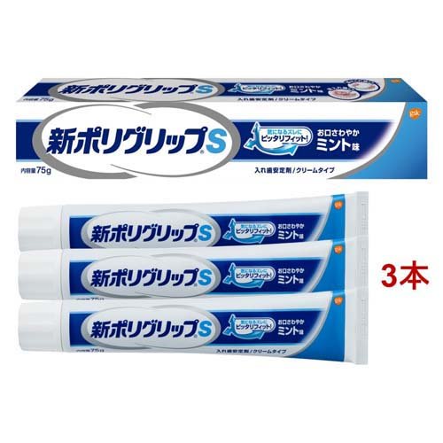 新ポリグリップS 部分・総入れ歯安定剤 お口さわやかミント味(75g*3本セット)[入れ歯安定剤 クッション]