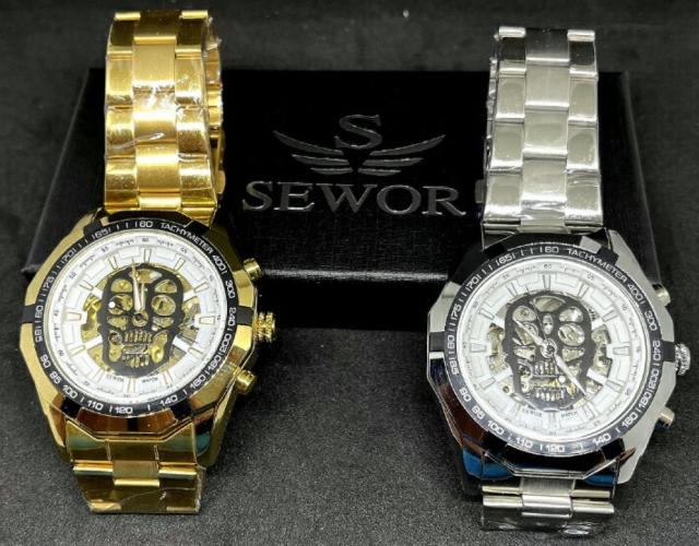 【送料無料・税込み】SEWOR TB-971802 971902 スカル skull 金 銀 ゴールド シルバー 腕時計 自動巻き Automatic bones 骸骨 オブジェクト Objects アナログ 腕時計 時計 ウォッチ watch メンズ 男 おしゃれ お洒落 カジュアル ビジネス 人気 流行 売れてる