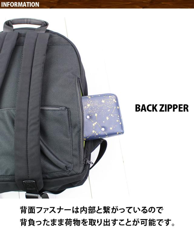 背面にもファスナー付きポケットが付いています。