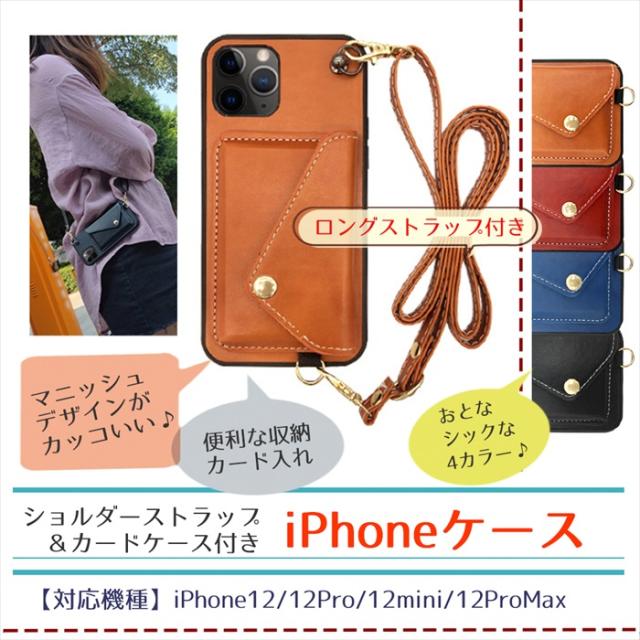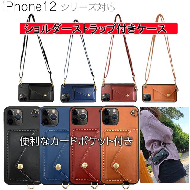 iPhone 12 ケース 12mini 12Pro 12ProMax 耐衝撃 ショルダーストラップ レザー カードポケット 全4色 かわいい 女子 高品質 収納 肩掛け ショルダー おしゃれ シンプル ロングストラップ カード収納 アイフォン アイフォン12 12プロ 12プロマックス agesugi_ssm