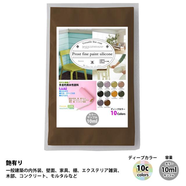サンプル ペンキ 多目的用 水性塗料 つや有り ファインペイントシリコン ディープカラー 全10色 10ml