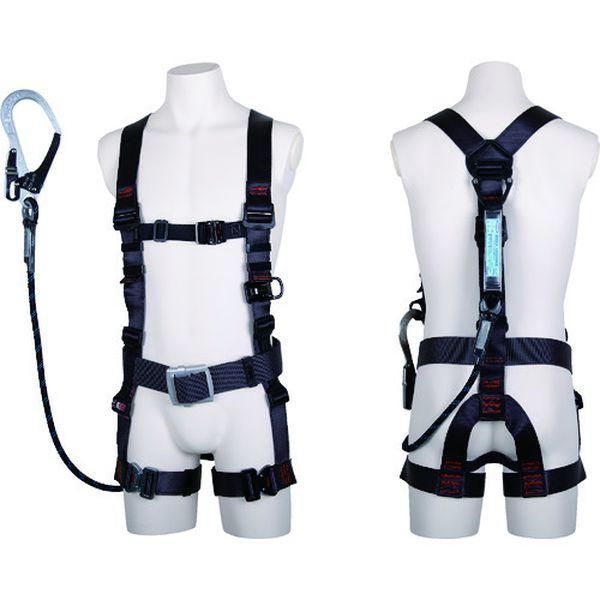 ・胴ベルト部に道具取り付けスペースを幅広く確保したY型のフルハーネスです。・腿部は左右が独立しているので束縛感が少なく、動きやすさを高める水平型腿ベルトです。・ベルトの長さの調節範囲を広く取っているため、夏服・冬服でもピッタリ装着が可能です。・型崩れ・縮みが少なく、キンクの起きないGブレードランヤード付きです。・デザイン性もよく、扱いやすいロープです。