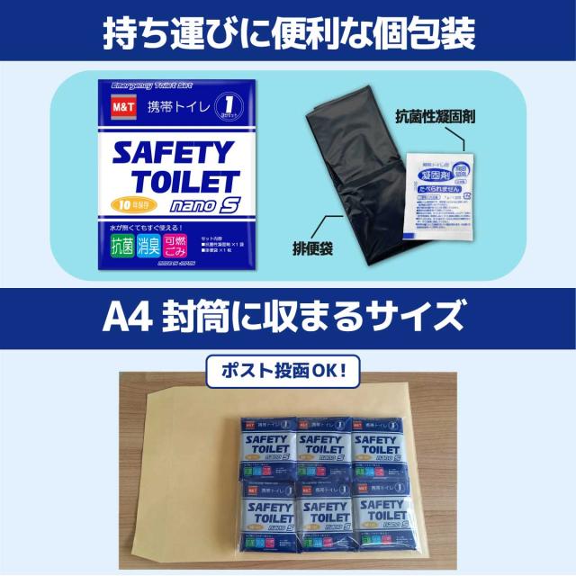 清潔で便利な超小型携帯トイレ「SAFETY TOILET nanoS」がお求めやすく12個セットを 送料無料でお届けします。