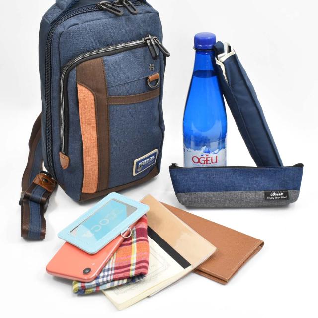 コンパクトなデザインながら、500mlペットボトル・財布・定期入れ・スマホなど、必要アイテムをしっかり収納でき、ちょっとした外出、旅行時のサブバッグにも最適なアイテムです。