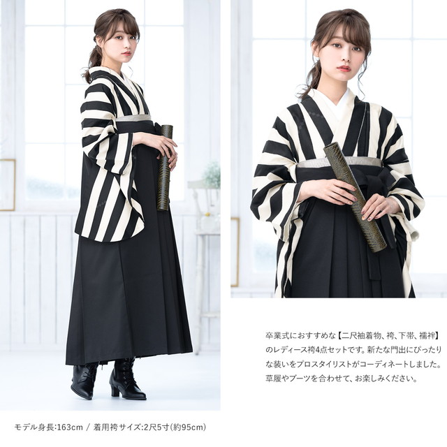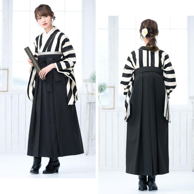 袴セットレディース 袴セット レディース 卒業式 小学生 大学生 ボヌールセゾン 黒 白 縞 ストライプ 小振袖 女性 レディース 日本製 送料無料