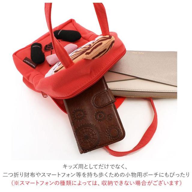 ・キッズ用としてだけでなく、二つ折り財布やスマートフォン等を持ち歩くための小物用ポーチにもぴったり。ふんわり優しい感触に癒される♪(※スマートフォンの種類によっては、収納できない場合がございます。)