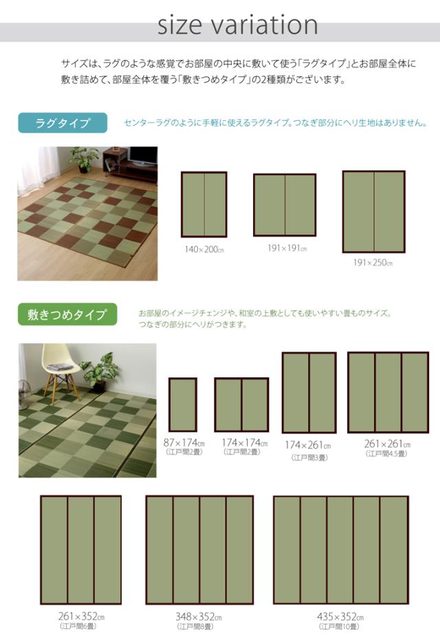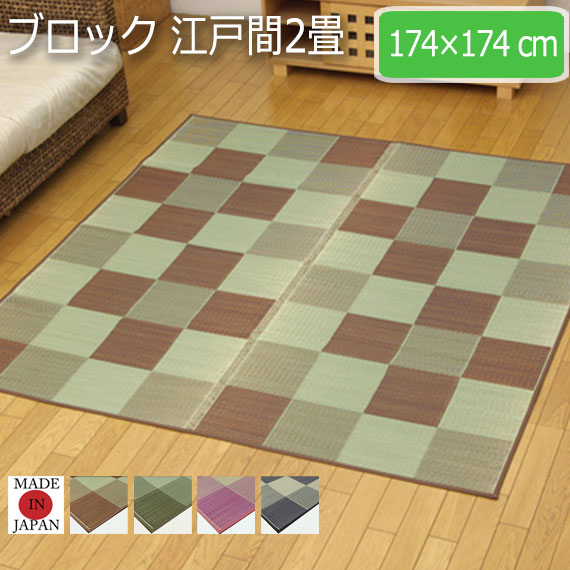 ブロック 江戸間2畳 174×174cm (ラグマット ラグ カーペッラグマット ラグ カーペット 角型 畳 和 和室 洋 洋室 い草 高級感 和モダン 国産 九州 紋織 抗菌 防臭 耐久性 丈夫 市松柄 ブラウン グリーン グレー ピンク おしゃれ おすすめ)