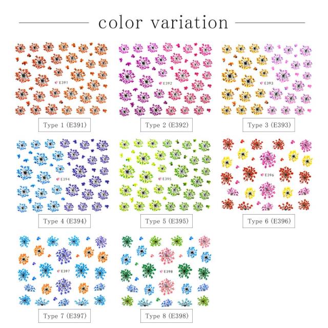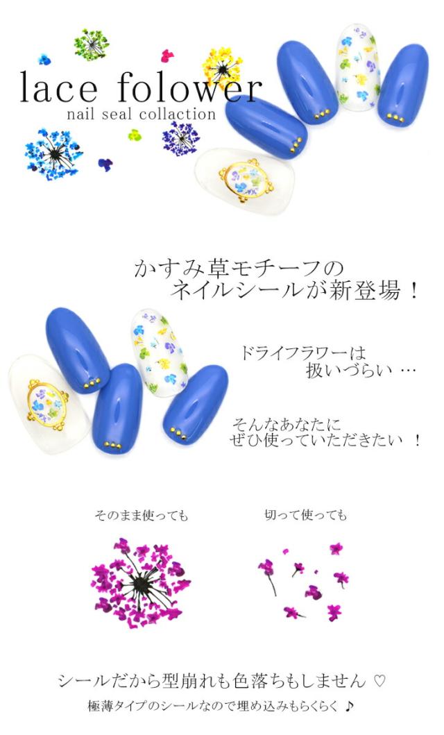レースフラワーネイルシール 全8種 各1枚入り フラワー 花柄 コゴメナデシコ カスミ草 ドライフラワー風 ネイル ジェルネイル ネイル レジン