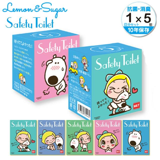 携帯トイレ 5回 ギフトボックス 簡易トイレ セーフティートイレ アウトドア用品 登山 トイレ 可燃ごみ 持ち帰り防臭袋付 抗菌 消臭 レモン&シュガー 5回 BOX