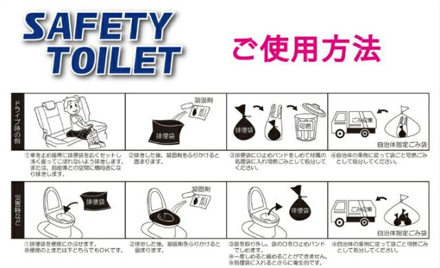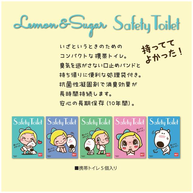 レモン&シュガーSAFETY TOILETは、災害時の備蓄トイレにもドライブ中の渋滞時、車酔い、アウトドアや介護などにも使える簡易トイレセットです。