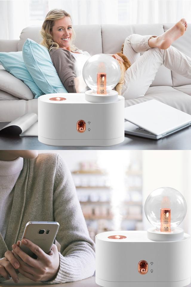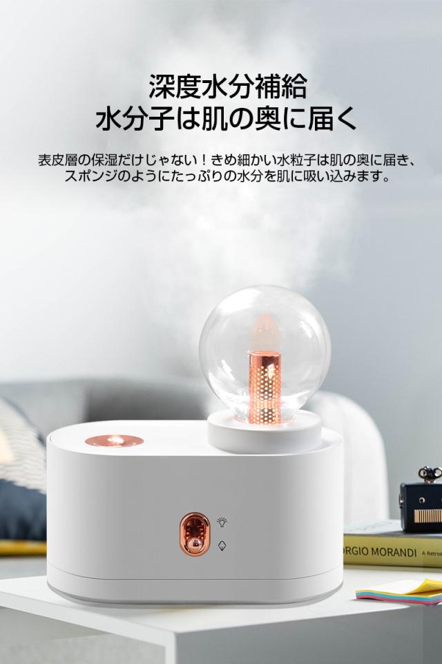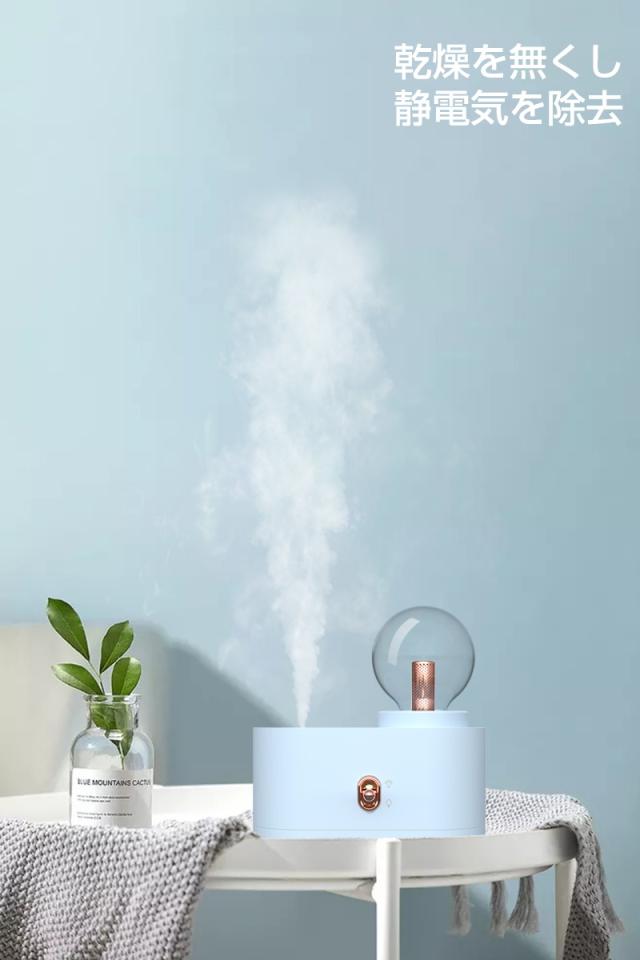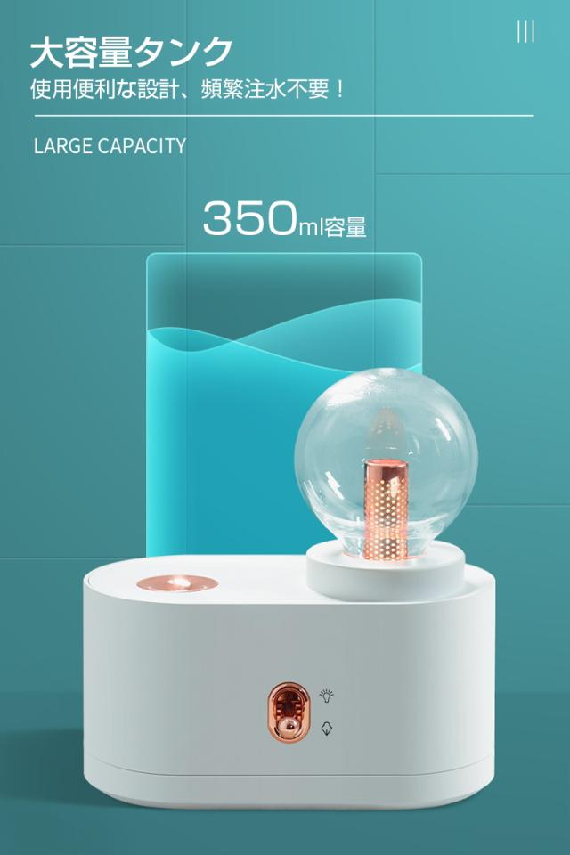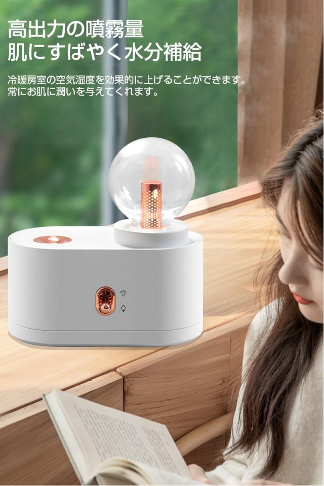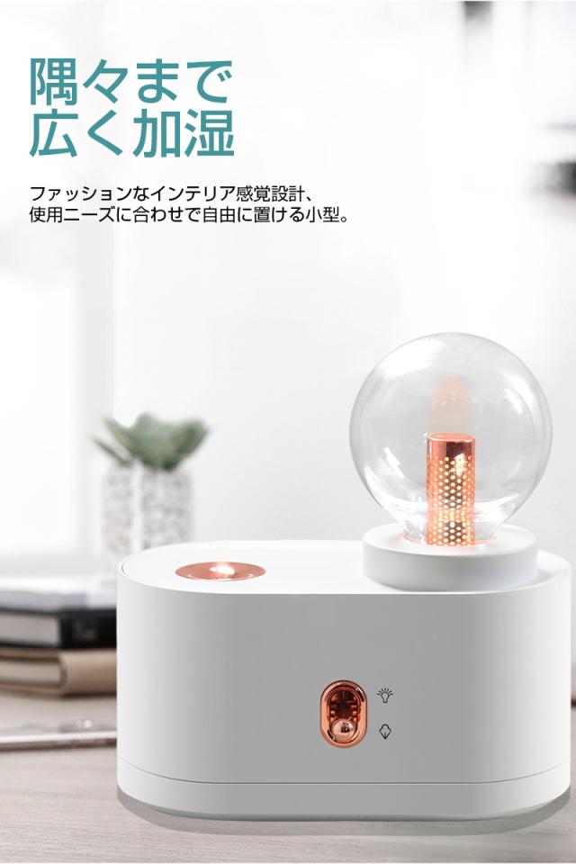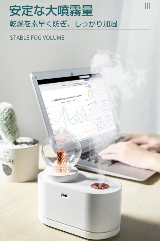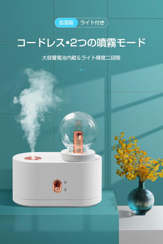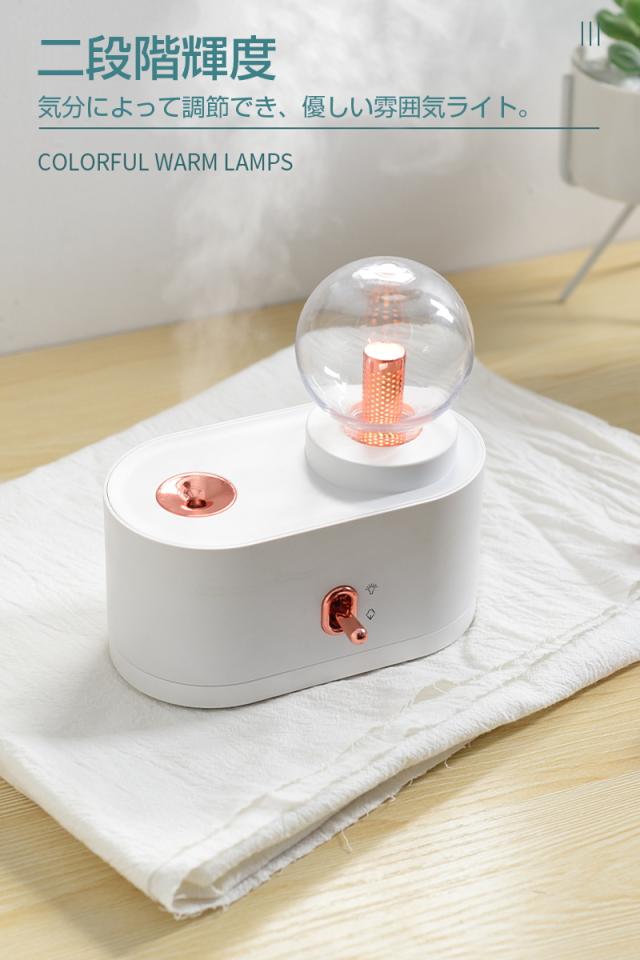 - 会社の机に置きたくて購入しました。 仕事にはライトは必要ありませんがかわいいです。 寝室に置きたい感じです。 試運転でつけてみましたがパワフル噴霧でしっかり潤ってくれそうです♪ 明日からしっかり活躍してくれる事でしょう。
