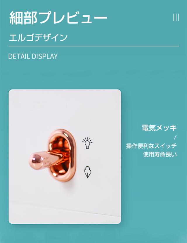 【二段階輝度調節】スイッチを上向きに3秒間長押し、電源とともにナイトライトが起動します(デフォルト初期輝度は50%)。二回押すと輝度は100%に上がります。もう一回押すとナイトライトを消灯します。