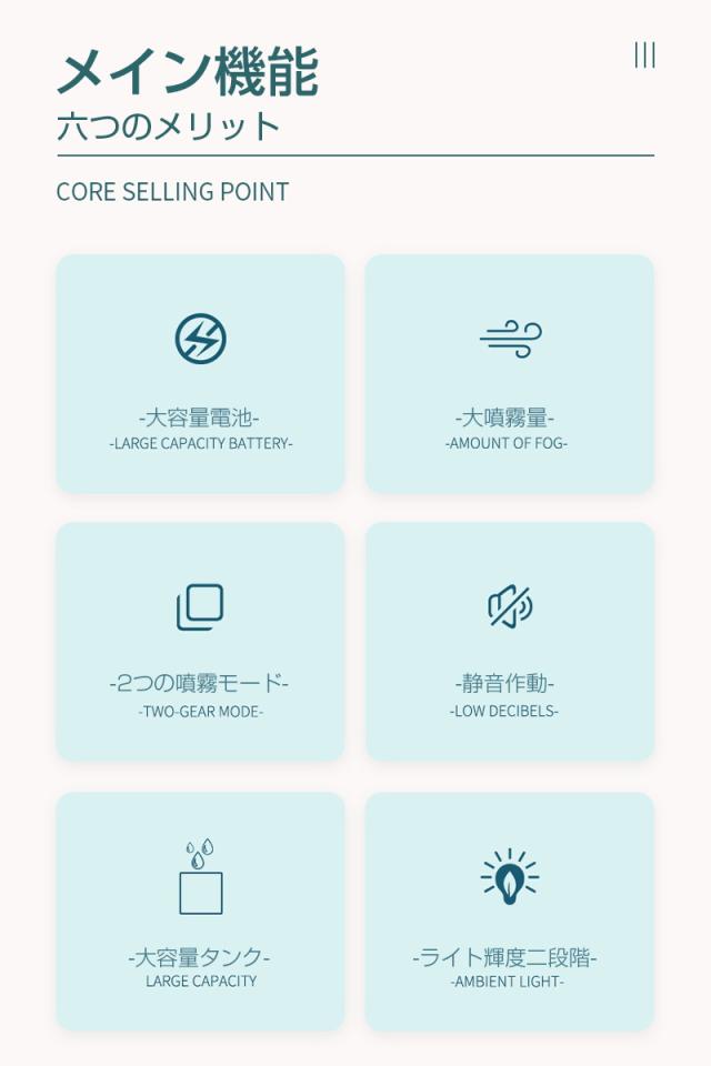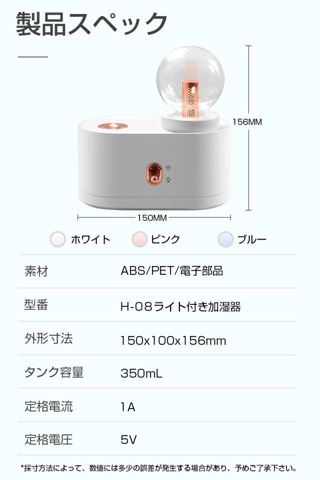 - 昨日注文したばかりなのにその日のうちに発送していただきありがとうございます。 商品は思ってたより小さめでしたがデザインと暖色系のライトが可愛いかったのと就寝時に使いたかったので、大容量で空焚き防止機能付が気に入って購入しました。 ミストの出方もいい感じです。 今晩から早速使ってみたいと思います。