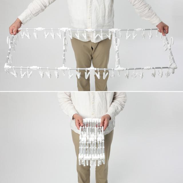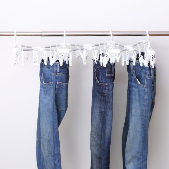 フレームの形を変えて広げることで、ジーンズや厚手の衣類など乾きにくい洗濯物も空気が通りやすく、乾きやすくなります。