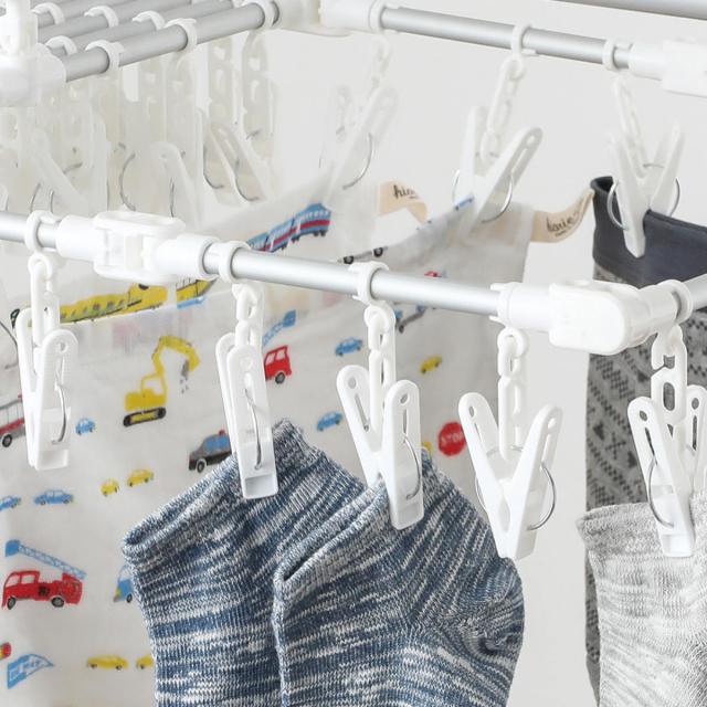 - 60ピンチは多いかな?と悩みましたが、洗濯物が多い日は伸ばして、少ない日は縮めて使えるので、買って良かった。アルミ製で軽くてたくさん干せる、しっかり竿にも固定出来て、言うことなしです。