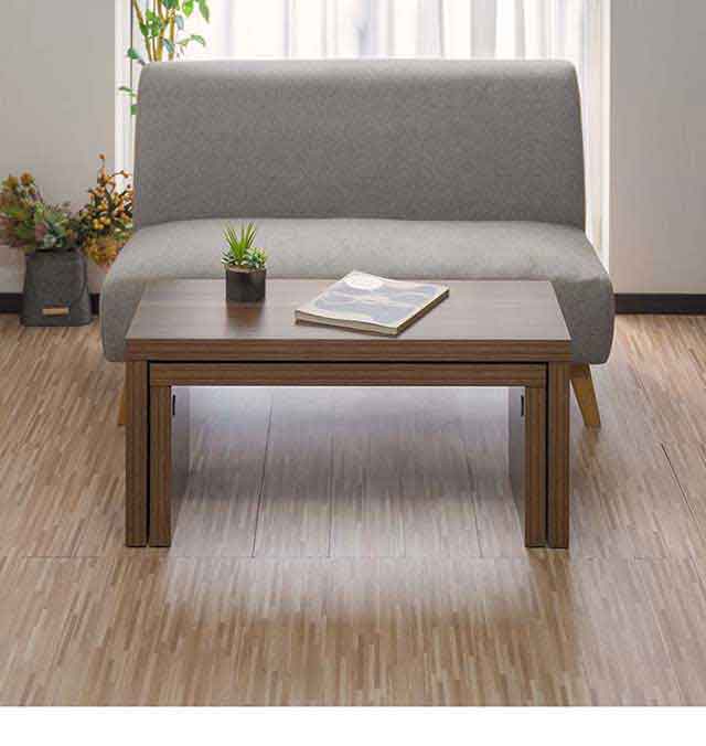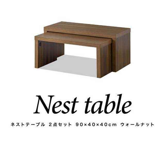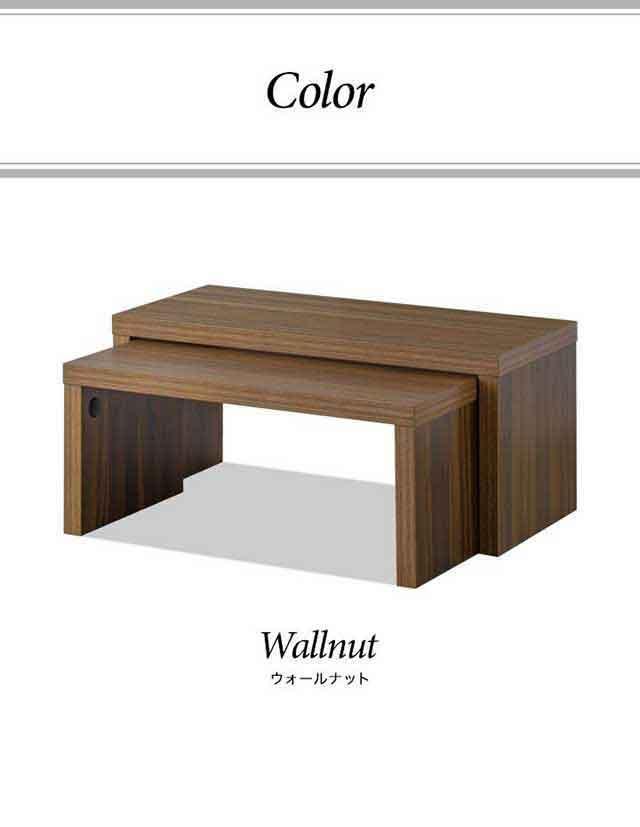ローテーブル 90 センターテーブル 木目調 2点セット 長方形 座卓 ネストテーブル スタッキング テーブル 収納 おしゃれ リビングテーブル 幅90cm x 奥行40cm x 高さ40cm 2段 コの字 スライド 伸縮 北欧 モダン 鏡面 ウォールナット 茶 送料無料