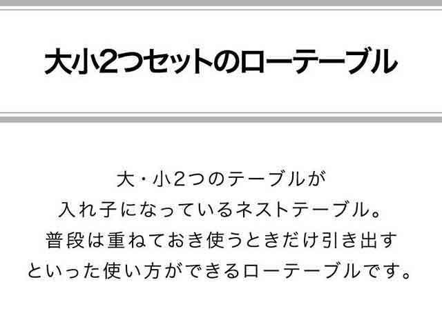 ネストテーブル ネスト センターテーブル 木目風 木目柄 木目調 Nesting table Nest table ローテーブル リビングテーブル ダイニングテーブル ソファテーブル ソファーテーブル カフェテーブル ローテーブル コーヒーテーブル 応接テーブル 座卓テーブル コンソールテーブル table 長机 デスク ローデスク PCデスク パソコンデスク ノートパソコンデスク 机 つくえ 文机 パソコン机 作業台 座卓 ちゃぶ台 ちゃぶだい 卓袱台 ロータイプ ロー 低い 低め 新生活 一人暮らし ひとり暮らし シングルライフ 単身赴任 和室 洋室 リビング センター ソファ ソファー 応接 オフィス ワンルーム棚付き 棚 長方形テーブル 長テーブル 2段 二段 2個組 2点組 2サイズ 大小 コの字 四角形 正方形 スクエア スタック スタッキング 重ね 重ね置き 入れ子式 組み込み式 伸縮 伸縮テーブル スリム 収納 簡単組み立て式 シンプル 北欧 アジアン ナチュラル モダン スタイリッシュ インダストリアル レトロ ビンテージ 西海岸 アンティーク ヴィンテージ ブルックリン ミッドセンチュリー おしゃれ