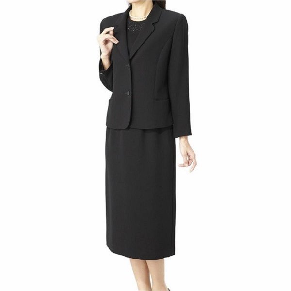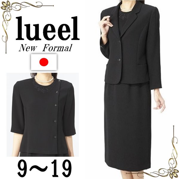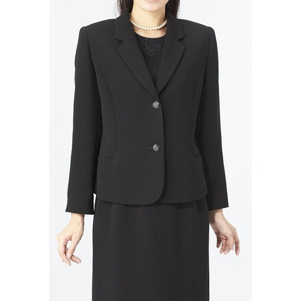 【送料無料】日本製 レディース 喪服 礼服 ブラックフォーマル スリーピース 3点セット スカート 冠婚葬祭 卒業式 卒園式 通年 大きいサイズ 9号 11号 13号 15号 19号 M L LL 春物 秋物 冬物 黒 Black 安 点 2073