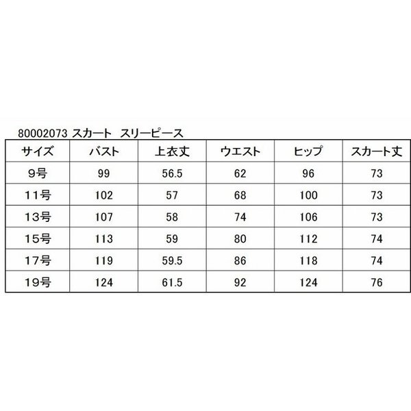 9号 バスト99 上衣丈56.5 ウエスト62 ヒップ96 スカート丈73