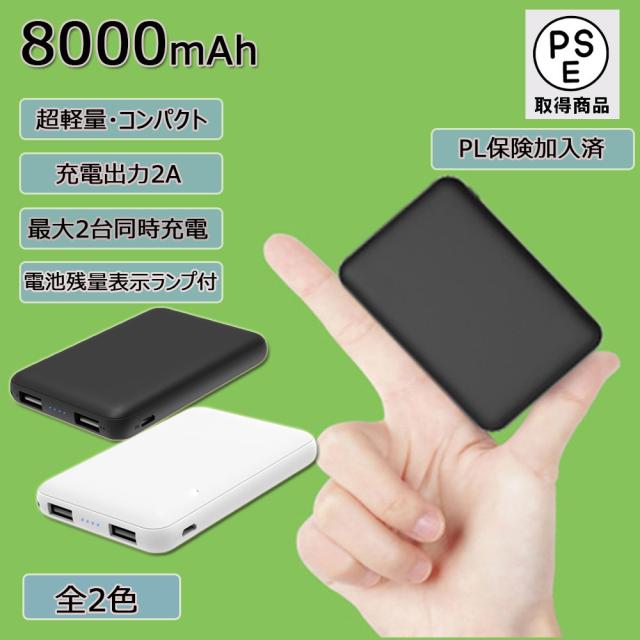 モバイルバッテリー 8000mAh 大容量 超軽量 コンパクト 2台同時充電 スマホ充電器 超薄型 急速充電 超小型 携帯充電器 PL保険 送料無料