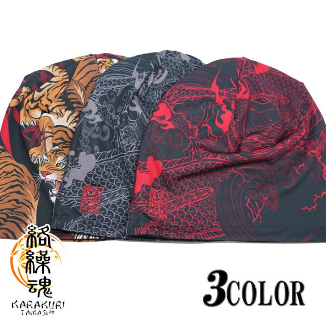 絡繰魂 カラクリダマシイ 和柄 ニット帽 ワッチキャップ 帽子 メンズ 総柄 龍 虎 211829