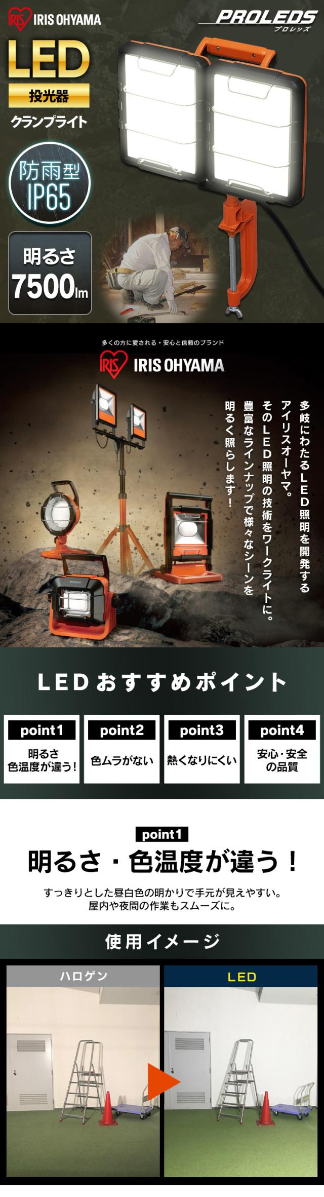 ライト LEDクランプライトAC式7500lm LWT-7500C-WP LEDクランプライト 照明 LED LEDライト LED照明 ライト 明かり 投光器 作業灯 長寿命 省電力 作業用品 ワークライト アイリスオーヤマ 送料無料
