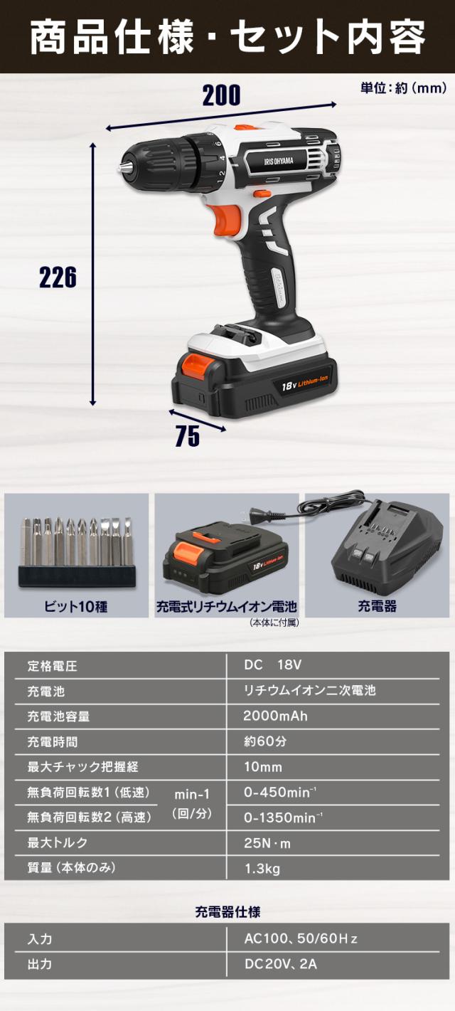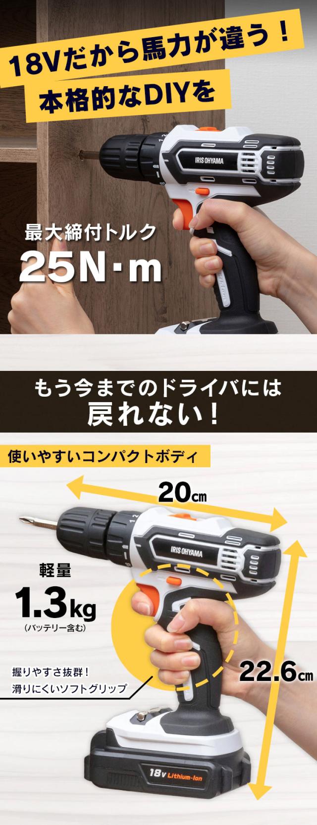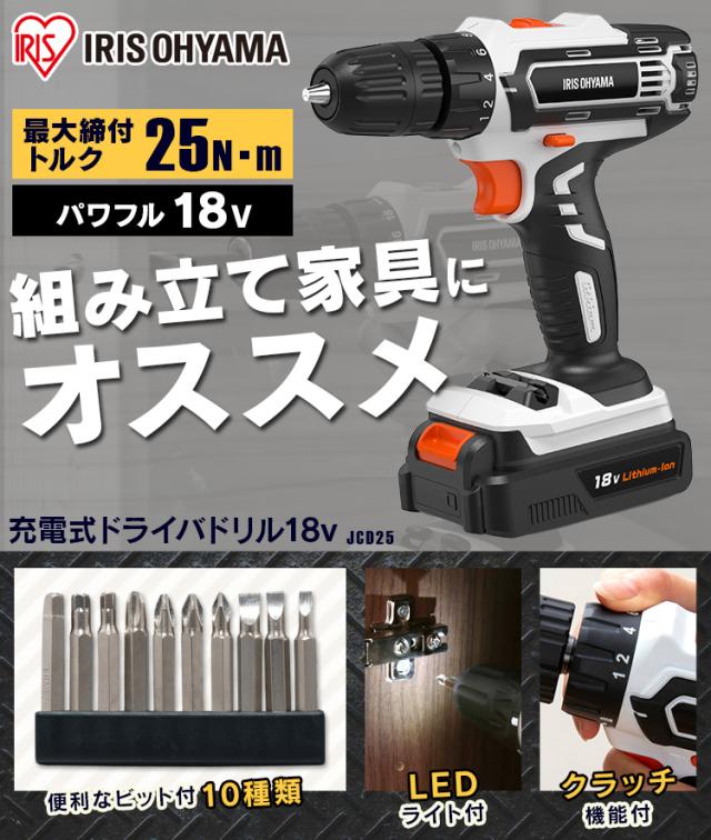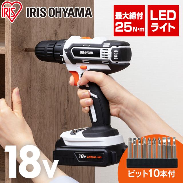 ドライバー ドリルドライバー 電式ドライバドリル18V JCD25 アイリスオーヤマ ホワイト 充電式ドライバドリル 電動ドライバー 電動ドリル 電動ドリルドライバー ドリル ドライバードリル 工具 充電式 電動工具 送料無料