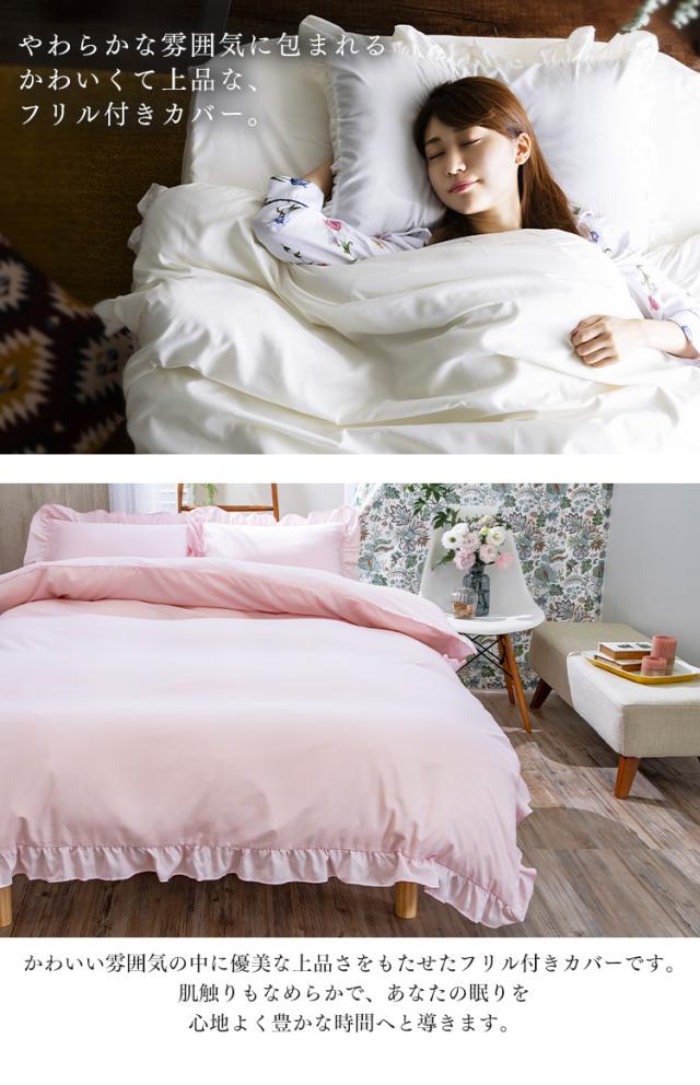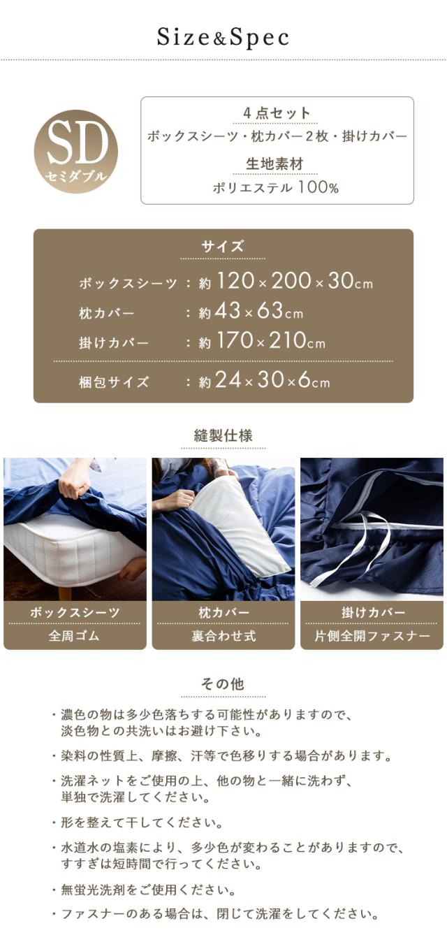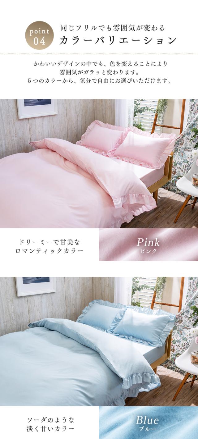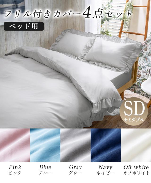 フリル付きカバー4点セット SD 全5色 寝具カバー フリル付き かわいい ボックスシーツ 掛布団カバー 枕カバー 4点セット ピーチスキン加工 セミダブル 模様替え 送料無料 【停】 アイリスプラザ