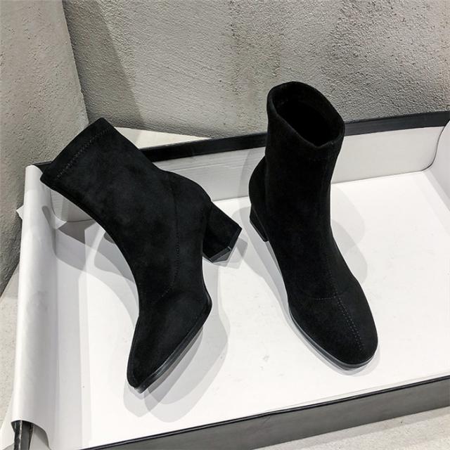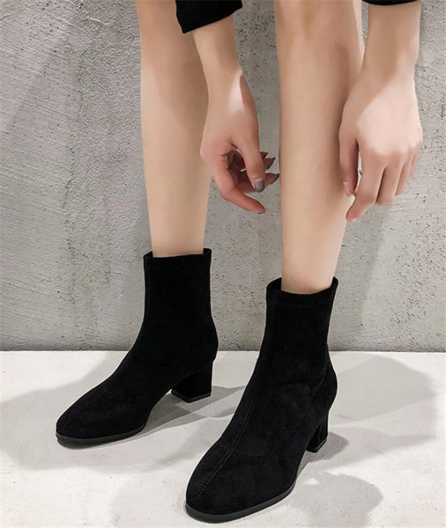 4cm ショートブーツ レディース ブーツ 厚底 太ヒール ブーティー ブーツ 秋冬靴 痛くない 歩きやすい 疲れない アンクルブーツ 防寒 大きいサイズ 小さいサイズ 黒 秋冬