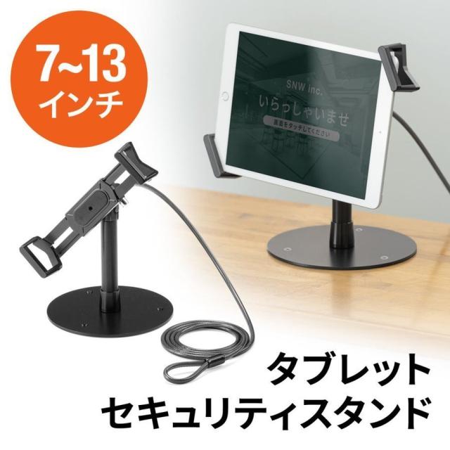 盗難防止 タブレットスタンド セキュリティワイヤー付き 長さ1.8m 7〜13インチ程度に対応[200-SL078]