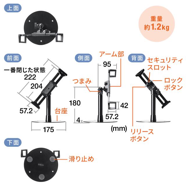⇒ご購入の前にご確認下さいオフィスや店頭に設置するタブレットの盗難を防止。7〜13インチ程度の各社タブレットに対応、同梱のセキュリティーワイヤーを装着してロックできるタブレットスタンド。【WEB限定商品】