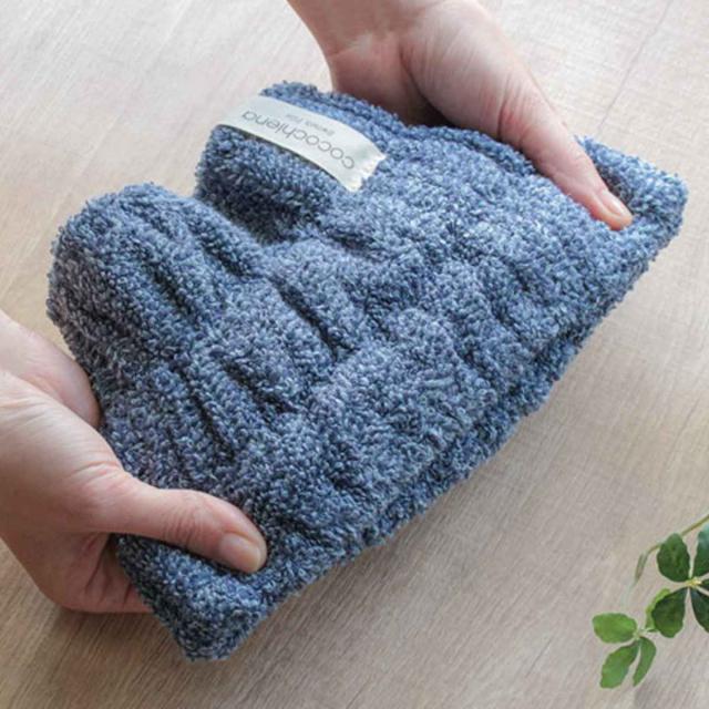 タオルは毎日使っていくうちに固くゴワゴワになってふんわり感が失っていきますが『cocochiena(ココチエナ)』はその逆で、洗う度にふっくら弾力が増し、スーッと水をしっかり吸水してくれる驚きのあるヘアターバンです。