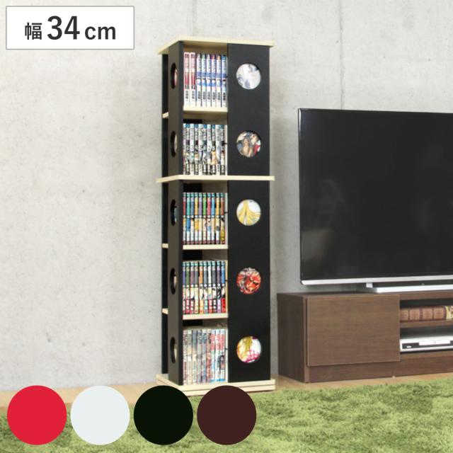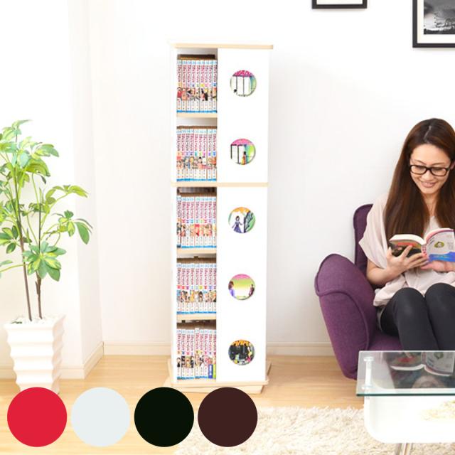 回転コミックラック 幅34cm 5段 ブックシェルフ 本棚 高さ119.5cm ( 回転 ラック ブックラック 大容量 スリム 収納 スリムラック 回転式本棚 シェルフ CDラック DVDラック ホワイト ブラック 白 おしゃれ )