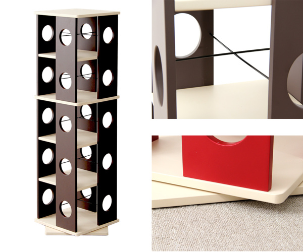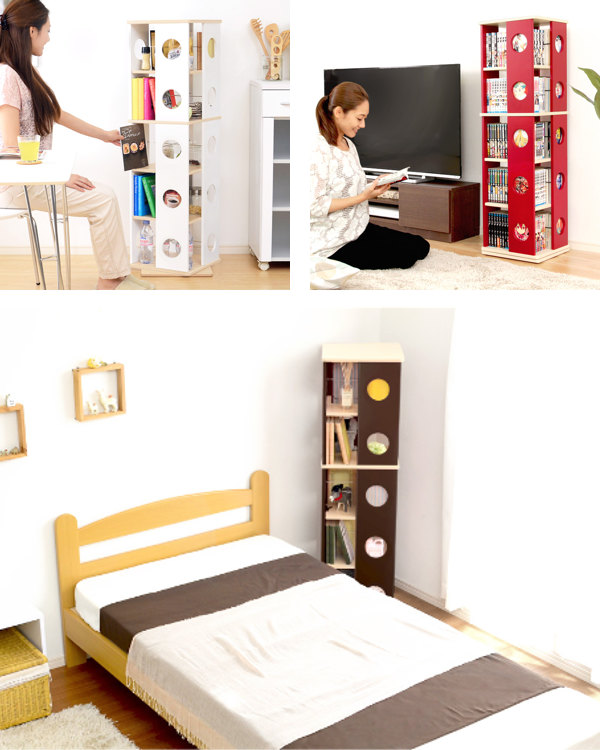 360度回転して、読みたい本をすぐに手に取ることができるコミックラックです。丸く空いた窓から、お気に入りの作品の表紙が見えるのもうれしいポイントです。