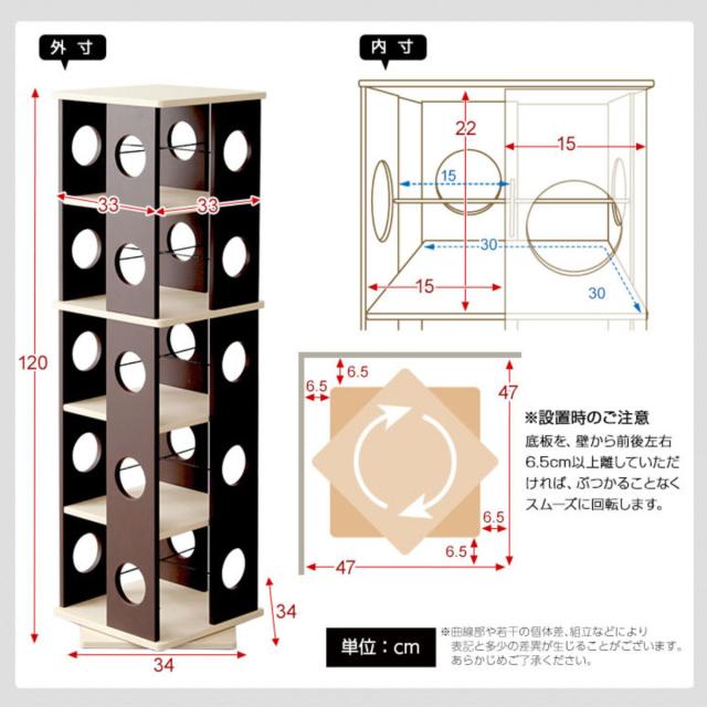 | 注意事項 | ※底面を壁から前後左右6.5cm以上離して設置していただくとスムーズに回転します ※商品ページ内には別の商品を含む画像を使用しています |
