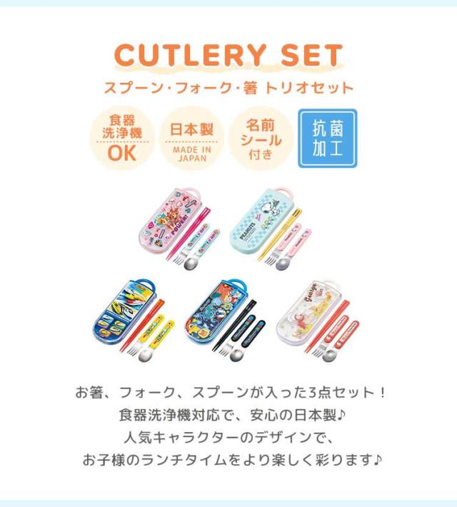 人気のキャラクターが勢ぞろい!フォーク、スプーン、箸がセットになったカトラリーセット