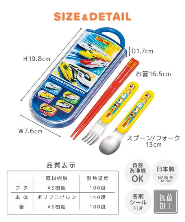 日本製なのでお子様も安心♪食器洗浄機対応でお手入れが簡単です。付属のケースで持ち運びにも便利で、学校や遠足などお子様のランチタイムにオススメのアイテムです。
