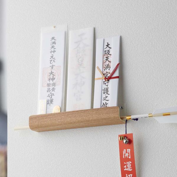 お神札や破魔矢を飾ることが出来る木目が美しい神札ホルダーです。神棚が無いご家庭で置き場に困っていたお神札や破魔矢を収納する事が出来ます。